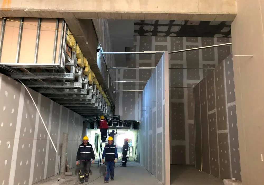 Cerramientos: Placa de yeso triple capa, aislantes acústicos de 100 mm de espesor.