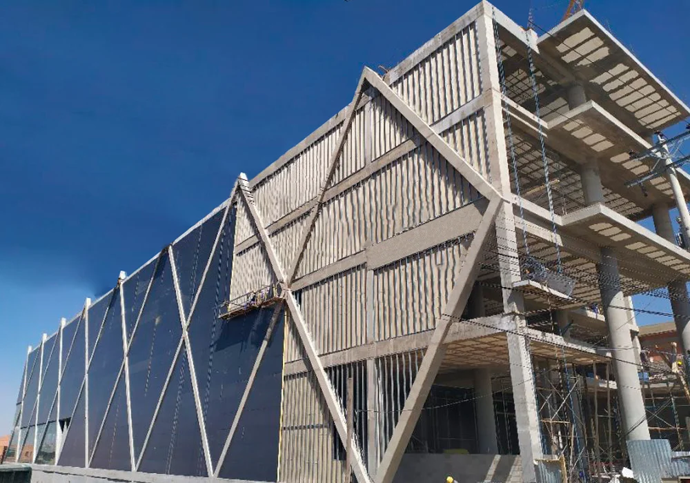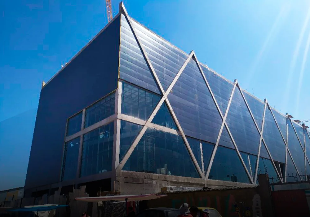 Provisión e instalación de fachada y cubierta metálica tipo “sándwich” con alma de poliuretano.